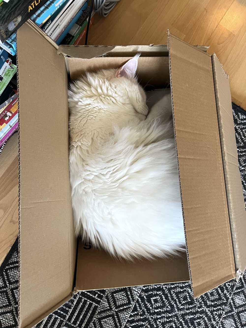 07:10 Kissanhiekkojen siivousta. Jollain on ollut vatsa sekaisin. Siivous laajenee patteriin, seinään ja sohvan selkänojaan. Verhoa alas repiessä tulee mieleen, että aamuja voisi viettää muullakin tavoin.