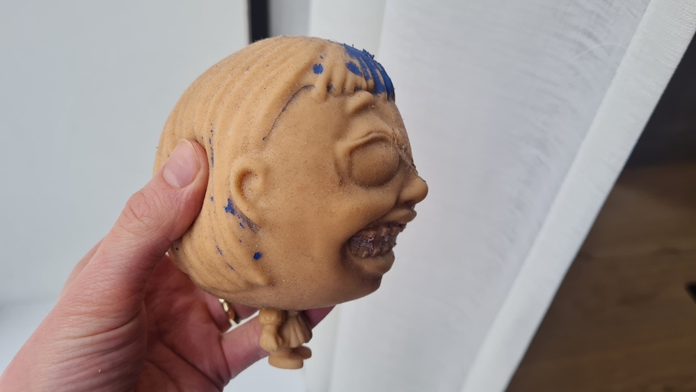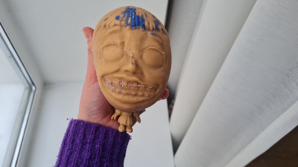 Lapsemme oli erittäin innoissaan uudesta lelustaan ja se oli ahkerassa käytössä noin kahden vuorokauden ajan. Tuossa ajassa Splats Head -hahmo koki kuitenkin valtavan muodonmuutoksen, sillä värit sen silmistä, suusta ja hiuksista olivat kuluneet lähes kokonaan pois.
