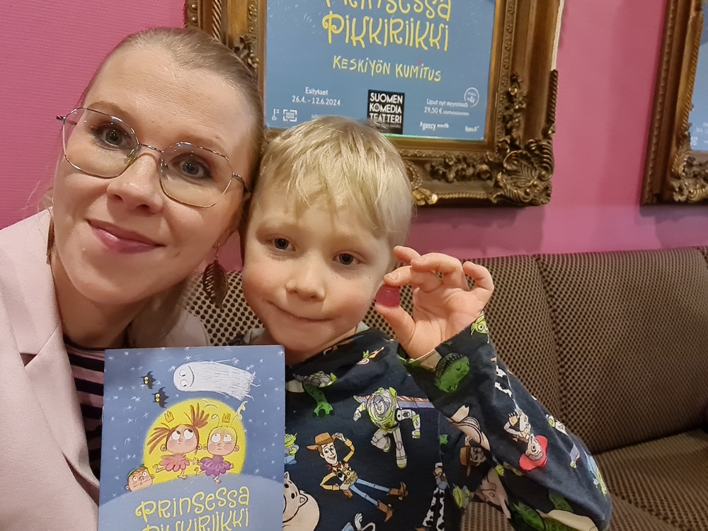 Aloitin viikonlopun kuusivuotiaan esikoisemme kanssa tavallista hauskemmalla tavalla: Lähdin viettämään äiti-poika-aikaa Linnanmäellä sijaitsevalle Suomen Komediateatterin Peacock-näyttämölle, jossa ensi-illassa oli Prinsessa Pikkiriikki ja Keskiyön kum(m)itus -esitys.