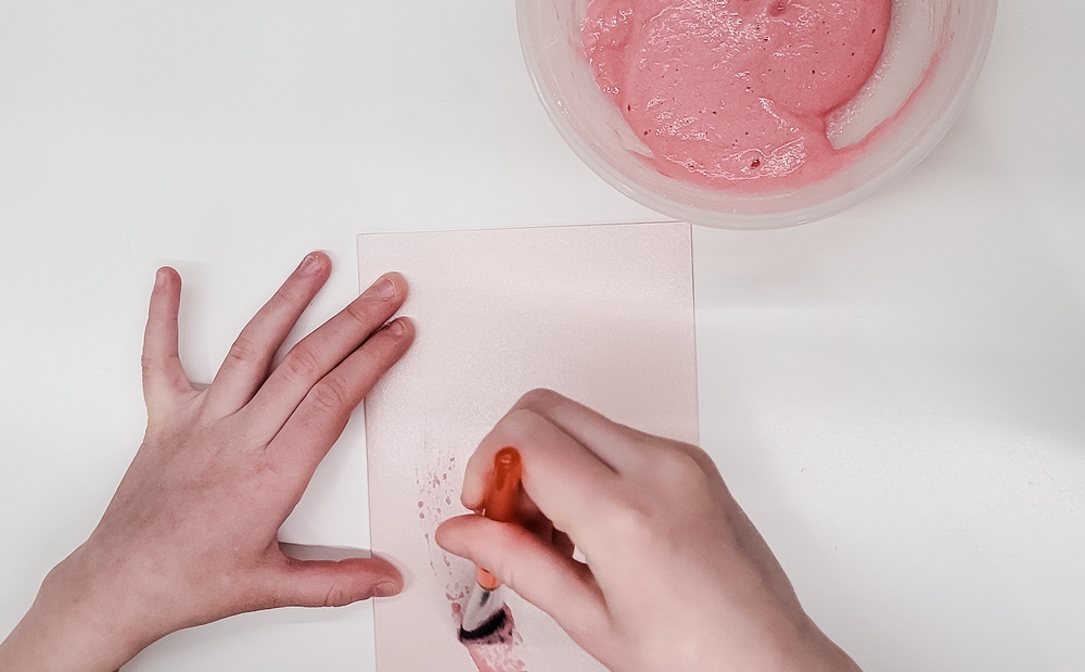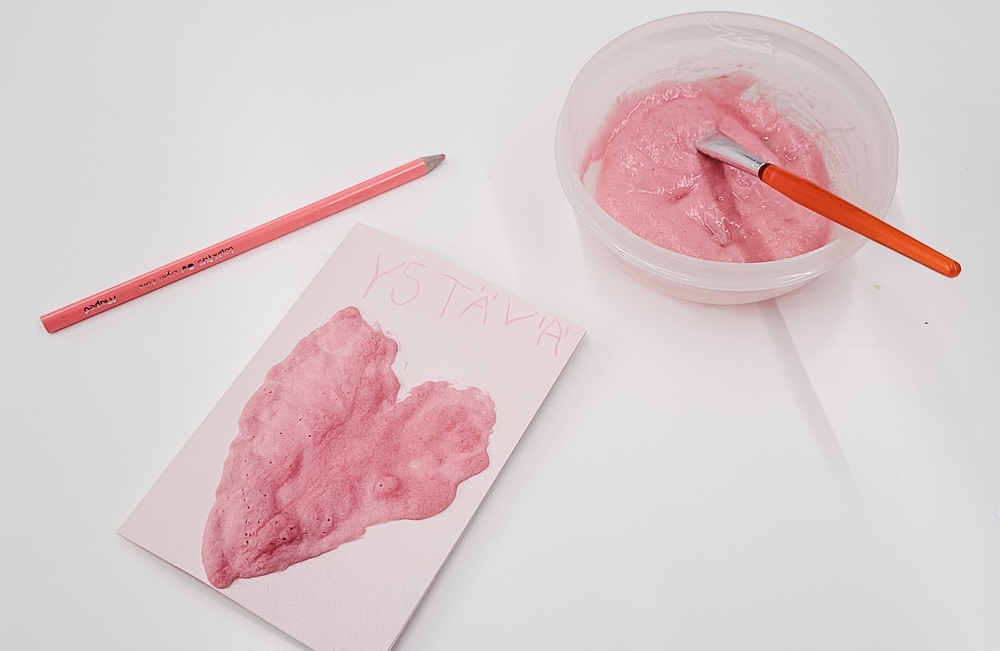 Anna lasten maalailla kartongille siveltimellä. Tai tehkää vaikka kortti! Huomaa, että tavalliselle, ohuelle paperille maalaaminen saa kuivumisen aikana paperin käpristymään, kannattaa siis suosia vahvempaa kartonkia.