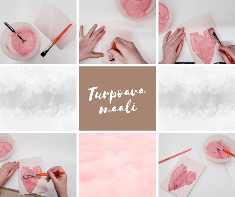 Turpoava maali valmistuu peruskeittiön aineksista ja jos haluat hifistellä, elintarvikeväreillä saat maalista taiottua vaikka kaikki sateenkaaren värit. Koska maali tehdään ruoka-aineista, se on myös myrkytöntä. Lopputulos on hieno ja yllättävä, eikä varise kuivanakaan irti kartongista.