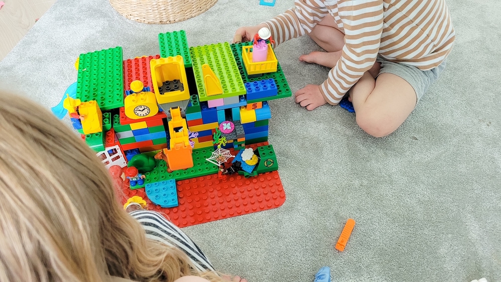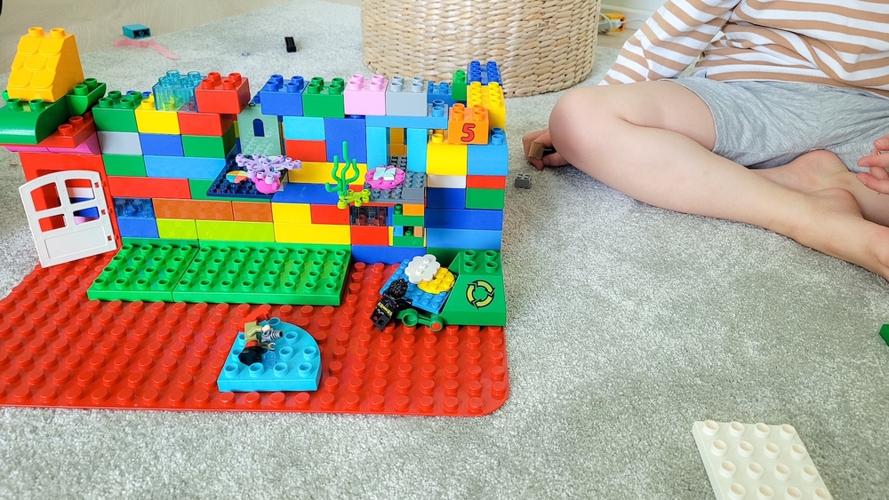 Olimme kuitenkin Mutsimedialla ällistyneitä siitä faktasta, että pikkulegoilla ja Duploilla voi rakennella myös yhdessä. Älä siis turhaan pakkaa Duploja pois lapsen kasvaessa, vaan jätä peruspalikat saataville pienempien palikoiden kaveriksi.