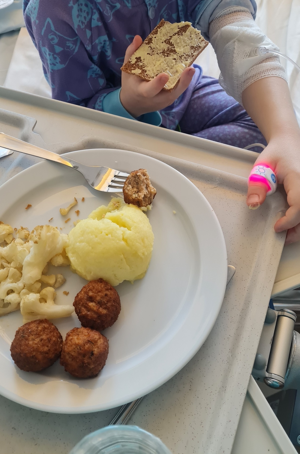 Järjestyipä lapselle välillä henkilökunnalta myös herkkuja, kuten jäätelö tai pieni sipsipussi. Kerran pidimme elokuvaillan peiton alle kääriytyneinä, ja napsimme kahvilan automaatista ostamiamme herkkuja. Sairaalajaksomme päätteeksi lapsi sai mukaansa jopa joulukääreeseen pakatun Lego-paketin.