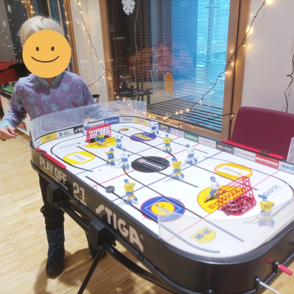 Flunssaoireiden väistyttyä saimme luvan mennä leikkiosastolle. Paikka oli suuri, hyvin varusteltuja leikkitiloja oli monia. Tekemistä oli kaikenikäisille lapsille, ja meidän suosikkimme oli huone, jossa oli esimerkiksi pöytälätkäpeli ja biljardipöytä.