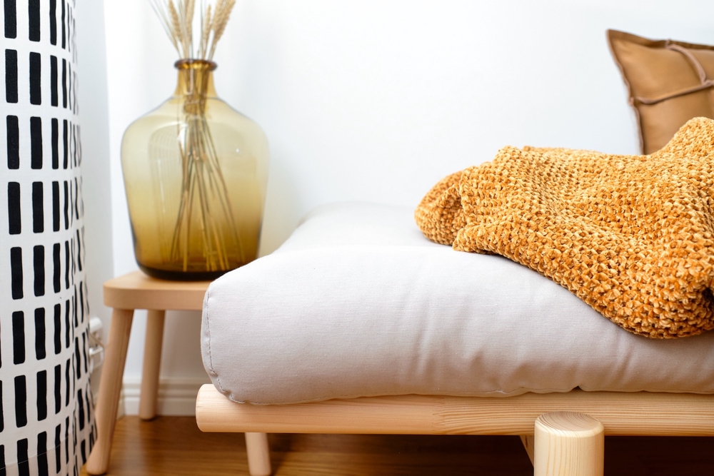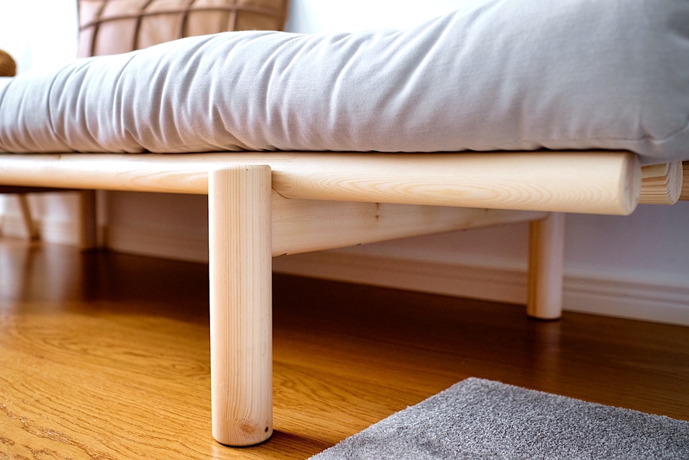 Japanilaistyylisen Pacen luonnonvärinen runko on valmistettu massiivipuusta ja futonpatja on laadukasta villasekoitetta. Runkoa on saatavilla myös mustaksi lakattuna ja omaan sisustukseen sopivan patjan voi valita yli kymmenestä väristä.