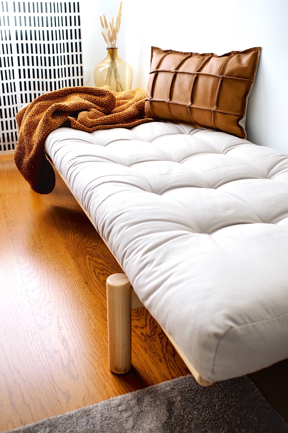 Ihanan moderni ja konstailematon Karup Designin Pace daybed oli itselleni (myönnettäköön) täysi heräteostos. Näin päiväpedin alun perin jossain Facebookin sisustusryhmässä ja ihastuin sen minimalistiseen designiin ja monikäyttöisyyteen. Löysin Pacen Futonnetin verkkokaupasta, nukuin yön yli ja pistin sohvan seuraavana aamuna tilaukseen.