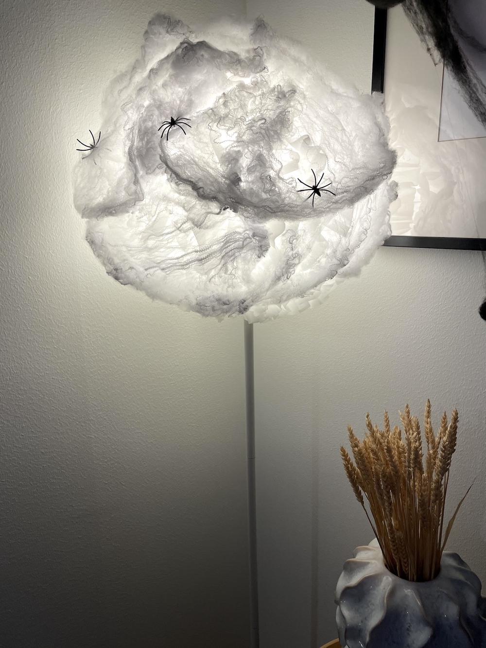 Koristele jalkalamppusi hämähäkinseitillä ja kiinnitä hämähäkit seittiin. Kun laitat valot päälle, kipittävät hämähäkit mielikuvitukseen asti! Näitä seittejä ja hämähäkkejä myydään monissa paikoissa ja ovat uudelleenkäytettäviä.