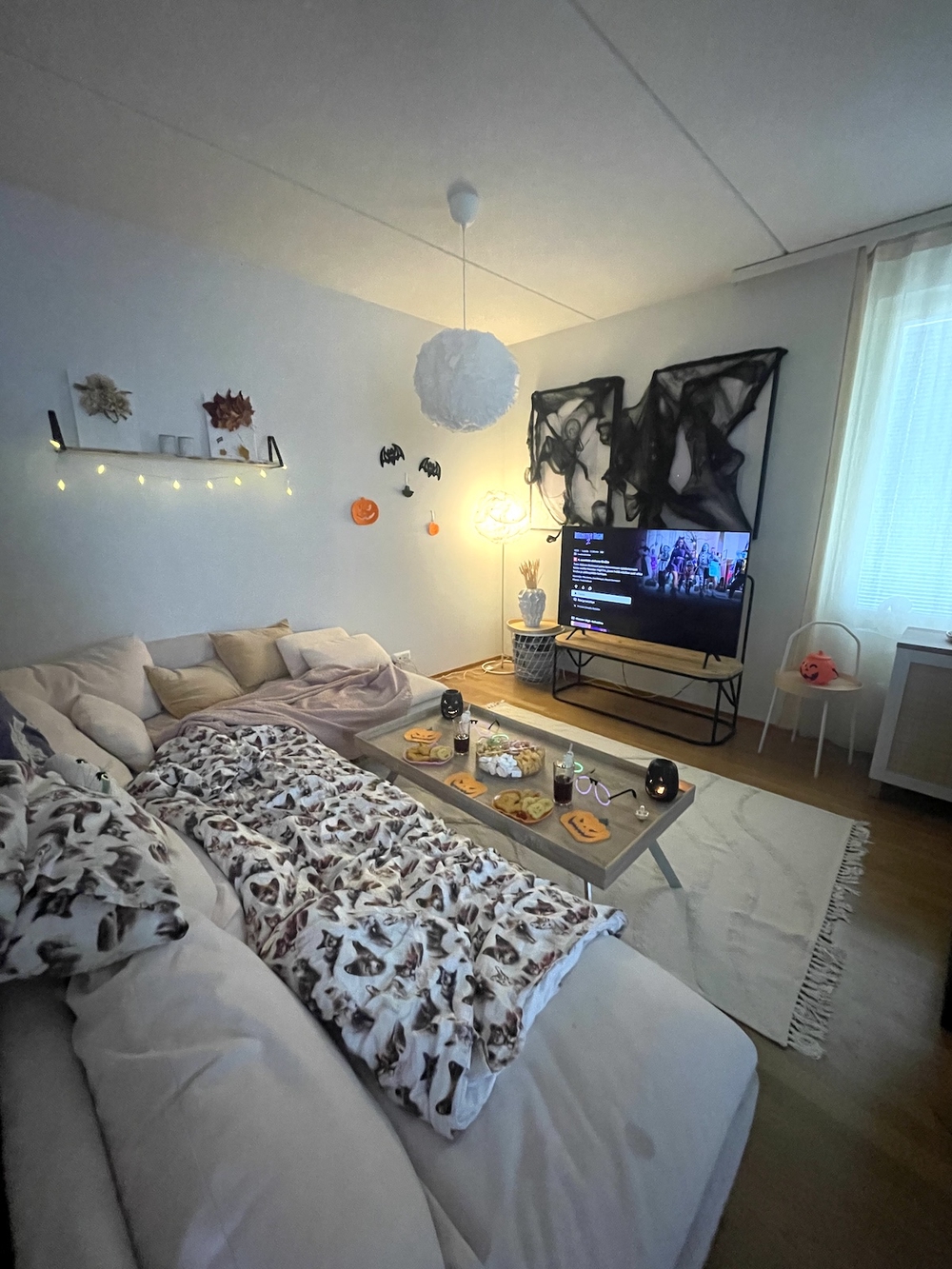 Tänä vuonna järjestin lapsille kauhujen elokuvateatterin, katsoimme Netfilixistä uusimman Monster High 2 -elokuvan ja uppouduimme monsterien maailmaan. Loin monsterimaisen tunnelman meidän elokuvateatteriin laittamalla kynttilöitä, hämähäkinverkkoa, valotikkuja ja monsterimaista syötävää.