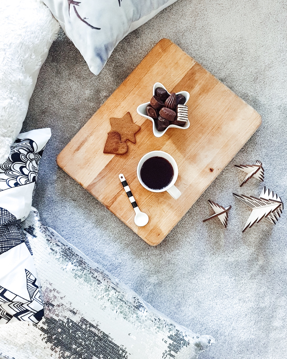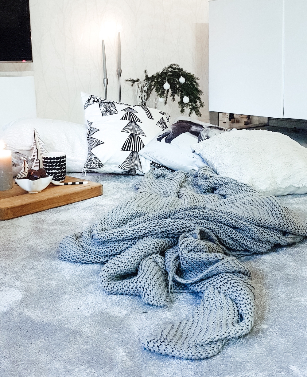 Joulusta on lupa nauttia hössöttämisen sijaan. Jos kodin siivous ja sisustus ei ole sinun juttusi, himmennä valot ja tunnelmoi. Tarjoa aamupalapuuro hämärässä, niin ei tiskipöydälle unohtuneet lautaset häiritse. Tai rakenna pehmoiselle matolle lämmin pesä koko perheelle ja kertokaa jouluisia tarinoita valoköynnöksen hohteessa, etkä edes muista puuttuvia joulukoristeita. Rento ja onnellinen perhe on paras sisustus, mitä kotiin voi saada.