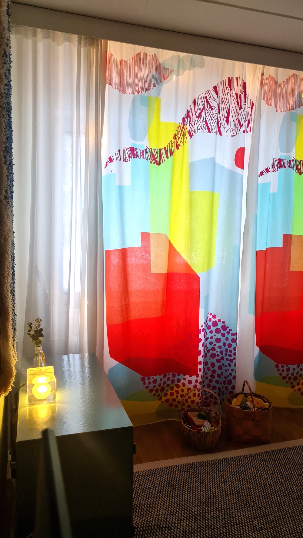 Verhoja tulee pidettyä usein kiinni. Talomme ohi kulkee silloin tällöin ihmisiä, minkä takia pidämme yleensä verhoja kiinni erityisesti olohuoneessa. Huomaan joskus kaipaavani, että ikkunoista avautuisi kaunis maisema ja luonnonvalo tulvisi sisään (eikä ohikulkijoita olisi.) Mielessä on käynyt myös, että sälekaihtimet olisivat varmasti hyvä hankinta ja tällöin verhoja voisi pitää enemmän auki.