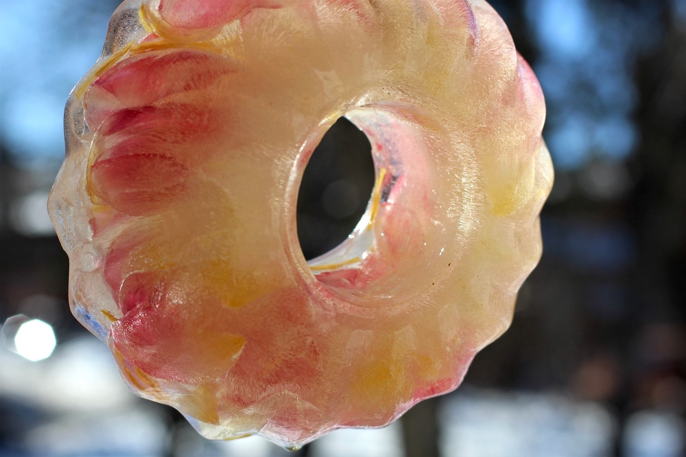 Lapsemme kysyi myöhemmin, miksemme laittaneet jääkranssin sisälle leluja. Hän ilmeisesti muisti aiemman jäädytysprojektimme. Jääkoristeen sisälle voikin hyvin jäädyttää mitä tahansa sopivan pientä, vaikka esimerkiksi pikkulegoja tai mitä vain luonnon antimia.