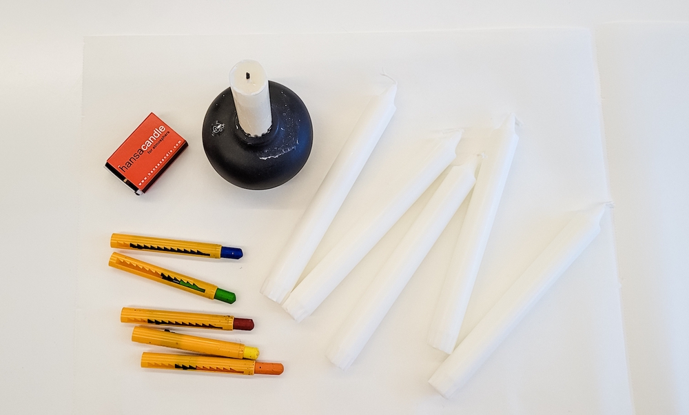 Laita ylimääräinen, värittämätön, kynttilä jalkaan ja sytytä se. Tähän voit käyttää mitä tahansa kotoa löytyvää kynttilää, paitsi tuikkuja, sillä niiden kanssa on vaikea työskennellä.