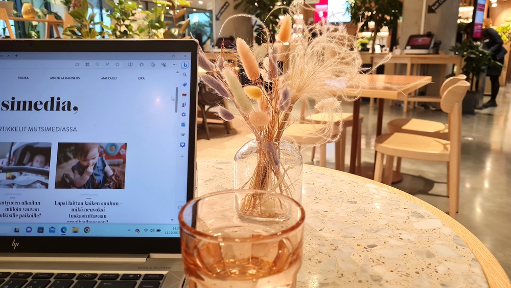 Näytön korjaukseen tarvittava osa saapui Triplan Fonumille reilussa vuorokaudessa. Päätin mennä tekemään etätöitä kauppakeskuksen kahvilaan sillä välin, kun puhelin huolletaan kuntoon. Arkipäivänä ostoskeskuksessa oli rauhallisempaa ja sain ilahduttavan nopeasti viestin, että puhelimen näytön korjaus on valmis. Kävipä se kätevästi etätöiden tekemisen lomassa!