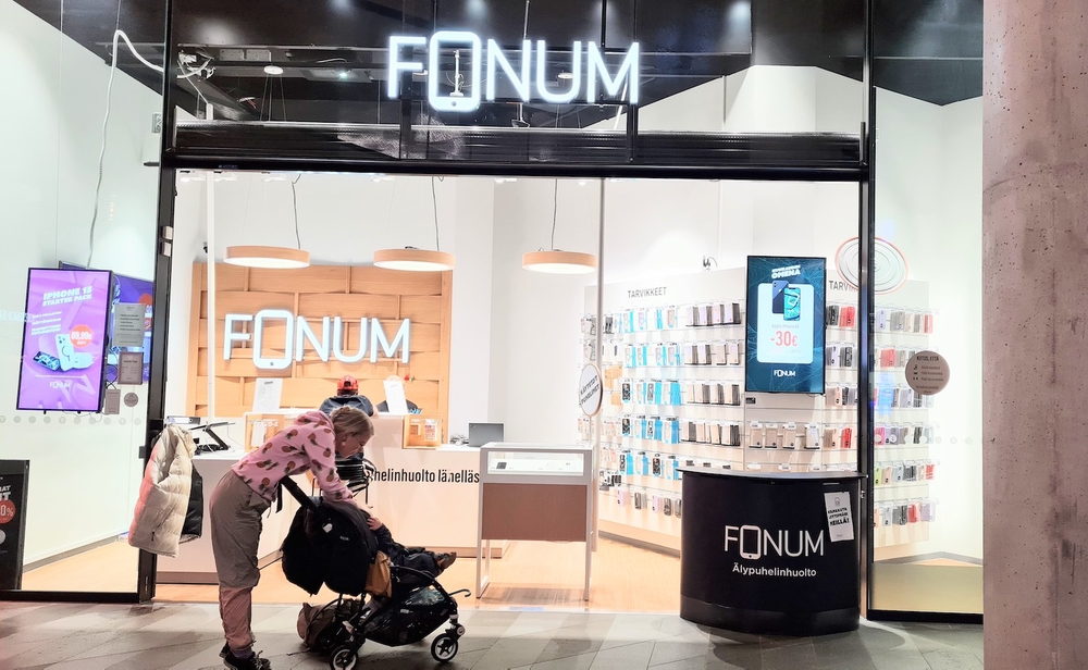 Suuntasimme viikonloppuna perheemme kanssa Helsingin Tripla-kauppakeskuksessa sijaitsevaan Fonumin liikkeeseen. Tuulisena, harmaana ja sateisena päivänä puhelimen vieminen korjattavaksi kuulosti mukavalta aktiviteetilta kauppakeskuksessa kaartelun lomassa. Puhelimen näytön korjaus hoituu useimmiten noin parissa kolmessa tunnissa. Fonumilla on lähes 40 toimipistettä ympäri Suomea, voit katsoa lähimmän liikkeesi tästä.