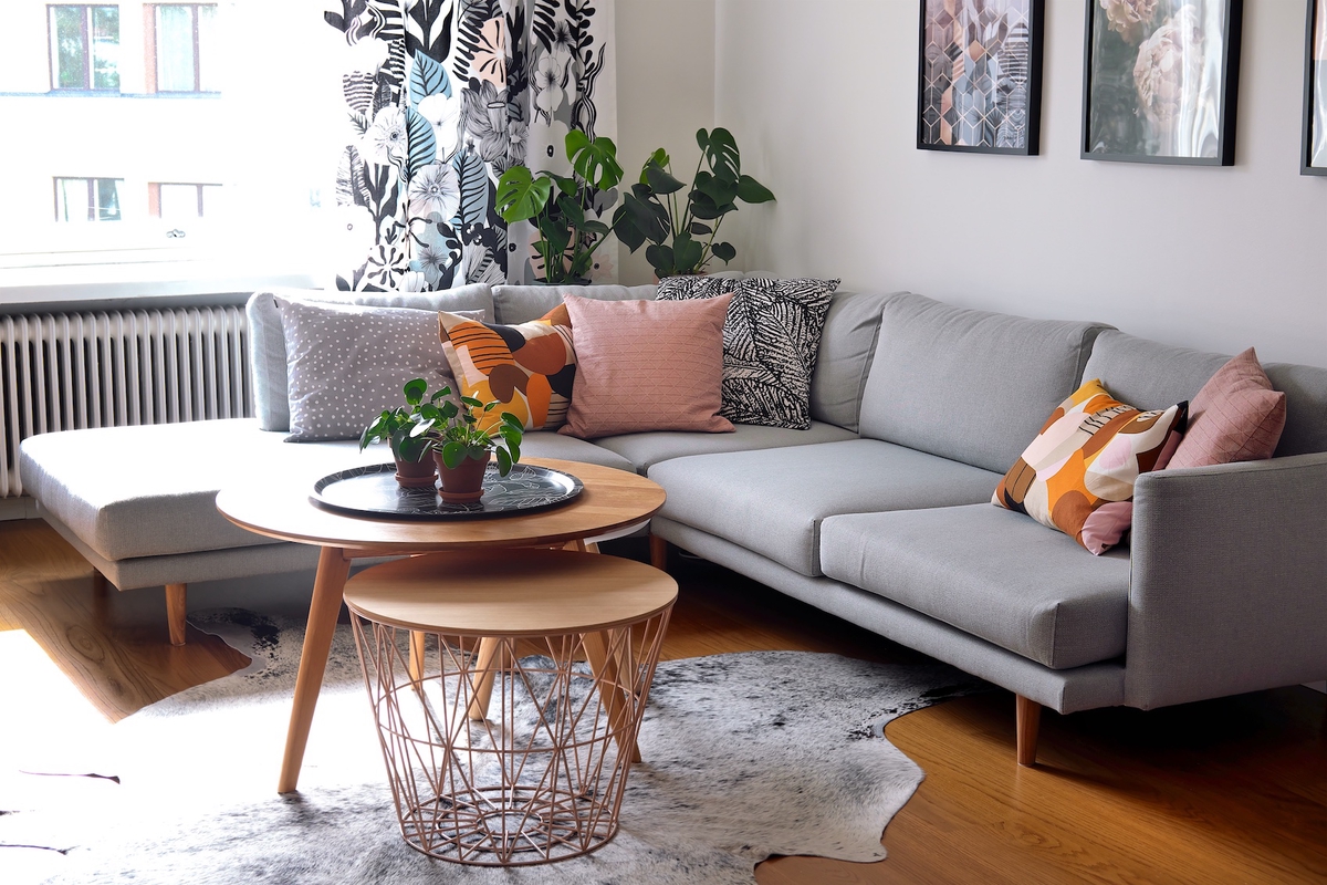 Olemme aviomieheni kanssa olleet kimpassa kymmenen vuotta. Tänä kesänä monet yhdessäolomme alkuaikoina tehdyt hankinnat ovat joko hajonneet tai hajoamassa. Sekä pyykinpesukoneen, blenderin, imurin, television että hiustenkuivaajan tiet ovat tulleet päätökseen kesän aikana. Lähes kymmenen vuotta vanha sohvamme on onneksi ollut kestävää sorttia eikä sentään hajonnut käsiin, mutta on jo hetken aikaa tuntunut liian pieneltä kolmihenkiselle perheelle. Sohvalle ei yksinkertaisesti enää koko poppoo mahdu mukavasti pötköttelemään leffaillan ajaksi. Tämä jos mikä on hyvä syy hommata uusi ja isompi laiskanlinna!