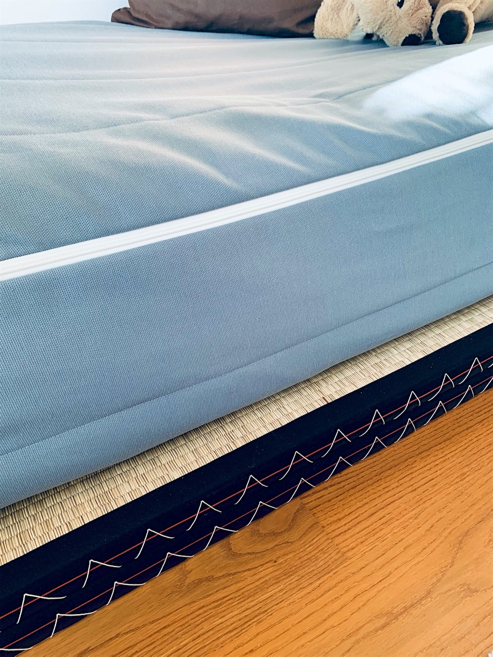 Myös parvisängyn alapuolella oleva varavuoteemme sai oman Zipit-päiväpeittonsa samasta kankaasta. Kakkosvuode ei ole säännöllisessä käytössä ja päiväpeiton ansiosta se pysyy ihanan freesinä, eikä kerää pölyä.