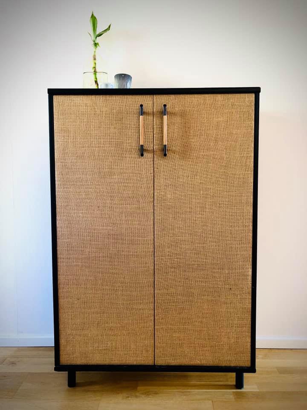 Päivitys levisi nopeasti, ja uudistunut kaappi sai valtavasti ihasteluja. Huonekalun ovet ovat päällystetty säkkikankaalla, joka tekee kaapin ilmeestä kauniin ja uniikin.