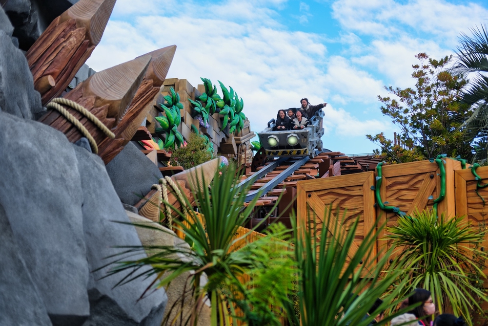 Alueella on mm. interaktiivisia aktiviteetteja, kuten kolikonkeräyspelejä, joita pelataan älyrannekkeilla. Voit myös käydä ajeluilla alueen kiertävillä vuoristoradoilla ja muissa laitteissa, mutta varaudu siihen, että jonot voivat olla todella pitkät – vierailumme aikana arviot jonotusajoista olivat pahimmillaan jopa 3,5 tuntia!