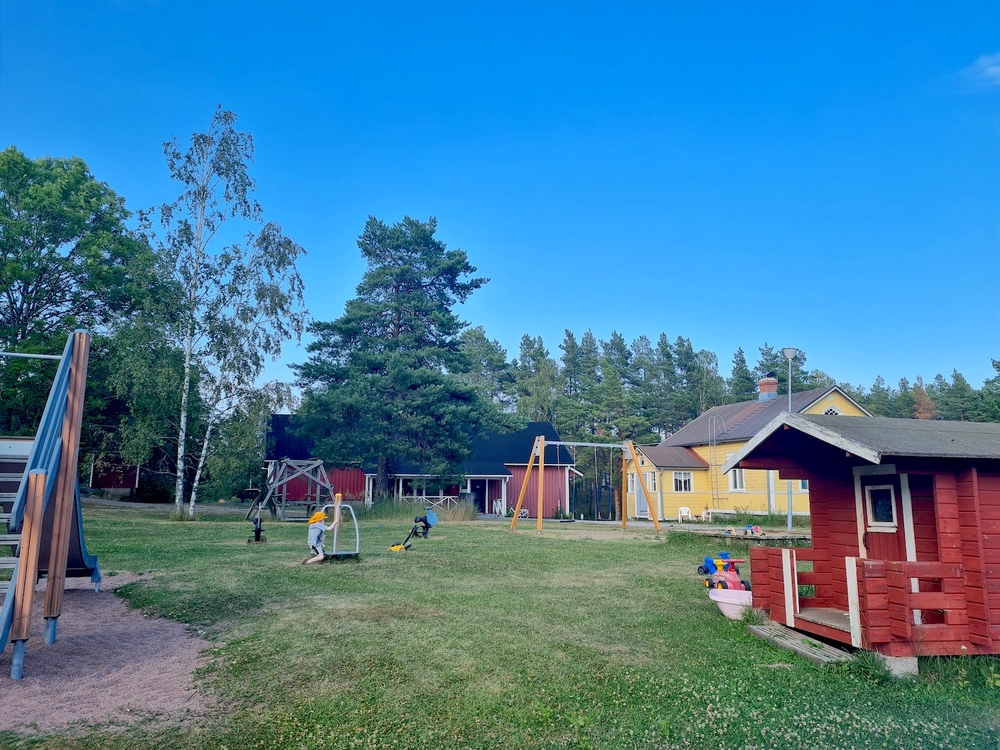 Leikkipaikka. Erityisesti pihan ”karuselli” ja leikkimökki olivat lapseni mieleen.