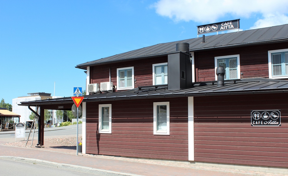 Museokäynnin jälkeen olimme nälkäisiä ja siirryimme lähimpään rantakahvilaan, Café Aittaan. Paikka sijaitsee vanhoissa tunnelmallisissa makasiinirakennuksissa, joissa on useita tasokkaita ravintoloita.