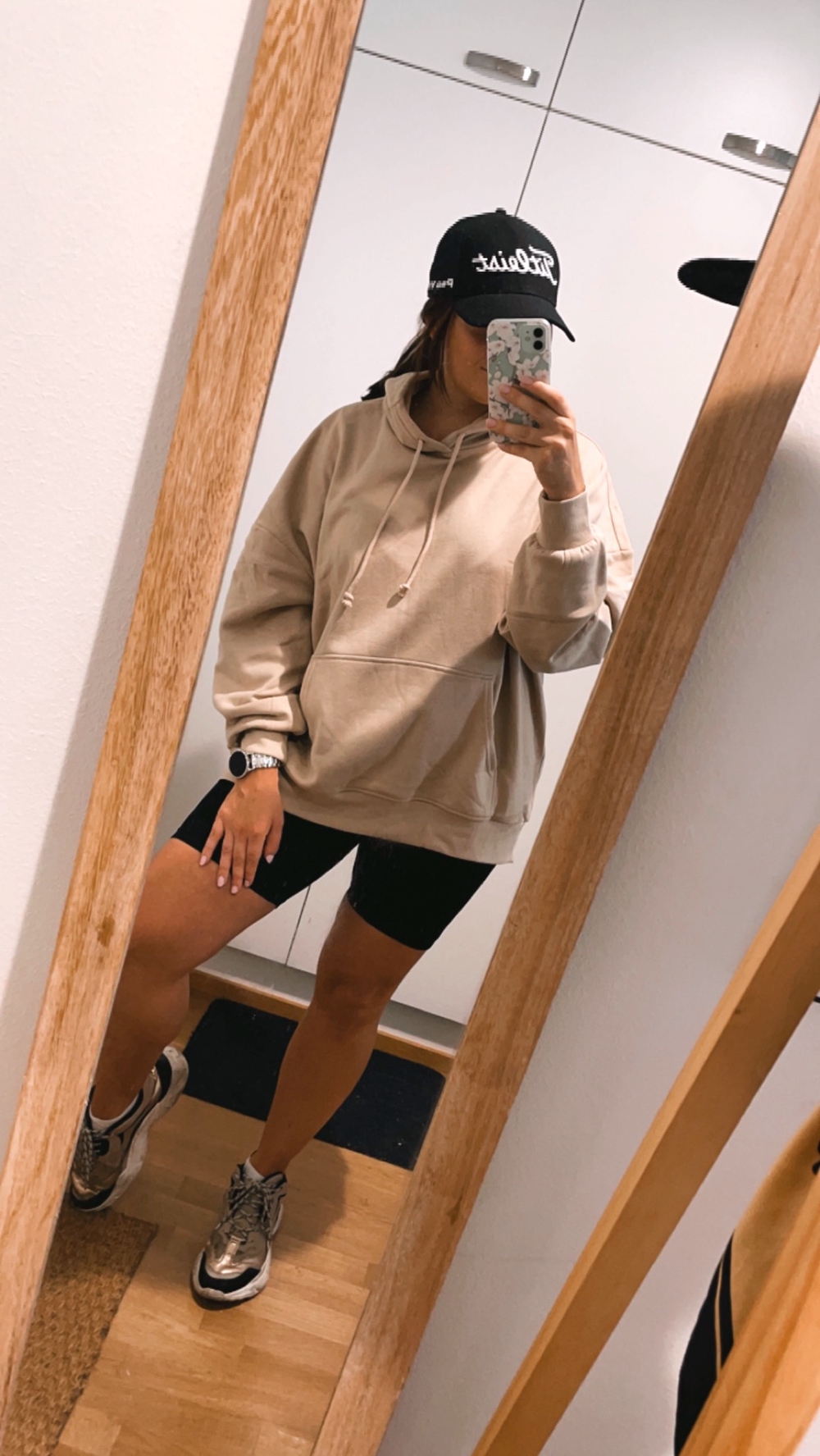 Jos haluat heittäytyä villiksi, hanki yhdet vaaleammat legginsit, joita voit vaihdella mustien tilalle. Huppareissa oversize on se, jolla saat aina homman toimimaan. Kaiken lisäksi näiden alla on mukava pitää imetysliivejä ja isompi huppari on helppo nostaa ylös imetyksen ajaksi. Kesäksi hanki mukavat mustat biker shortsit, joita voit käyttää legginsien sijaan.