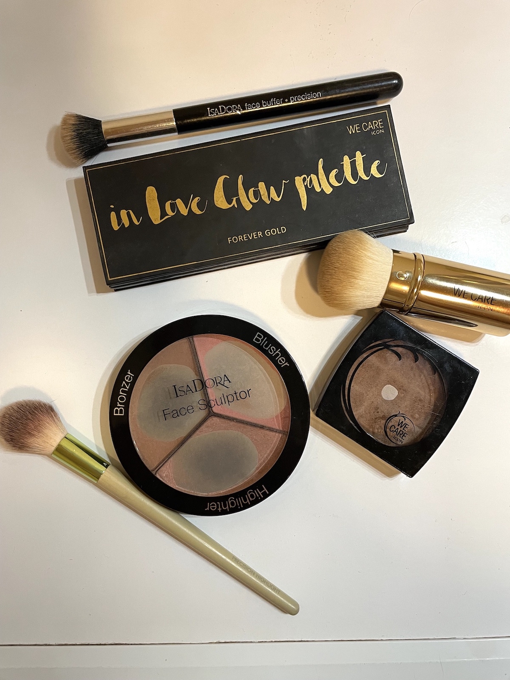 Kesäisin käytän arkimeikissä pelkästään aurinkopuuteria ja glowta, koska kesän hehkeä iho riittää todella pitkälle. Talvisin huomaan, että tarvitaan punaa, vaaleutta ja hehkua paljon saadakseen kasvot eloon. Tällöin aurinkopuuteri taas jää pienemmäksi osuudeksi itselläni.