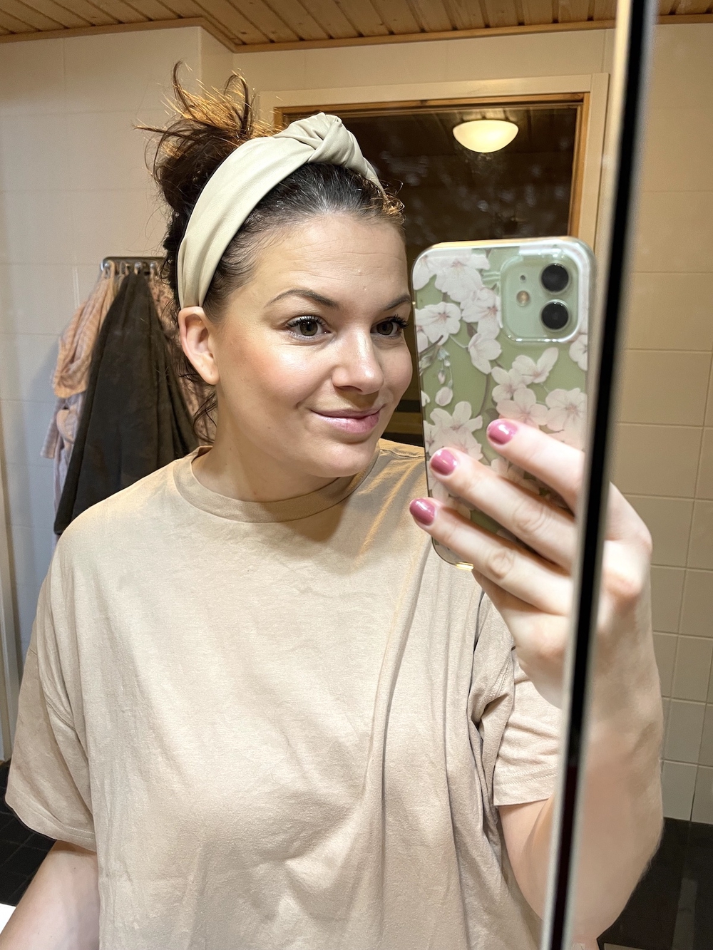Saan arkimeikin tekemisestä energiaa päivään ja kaiken lisäksi tähän ”hehkumeikin” tekoon menee noin 5 minuuttia. Oman hyvinvointini kannalta koen tärkeäksi tehdä meikkauksen päivittäin. Tai no sunnuntaisin saatan kyllä vetää ilman meikkiä ja pyjama päällä kotona koko päivä.