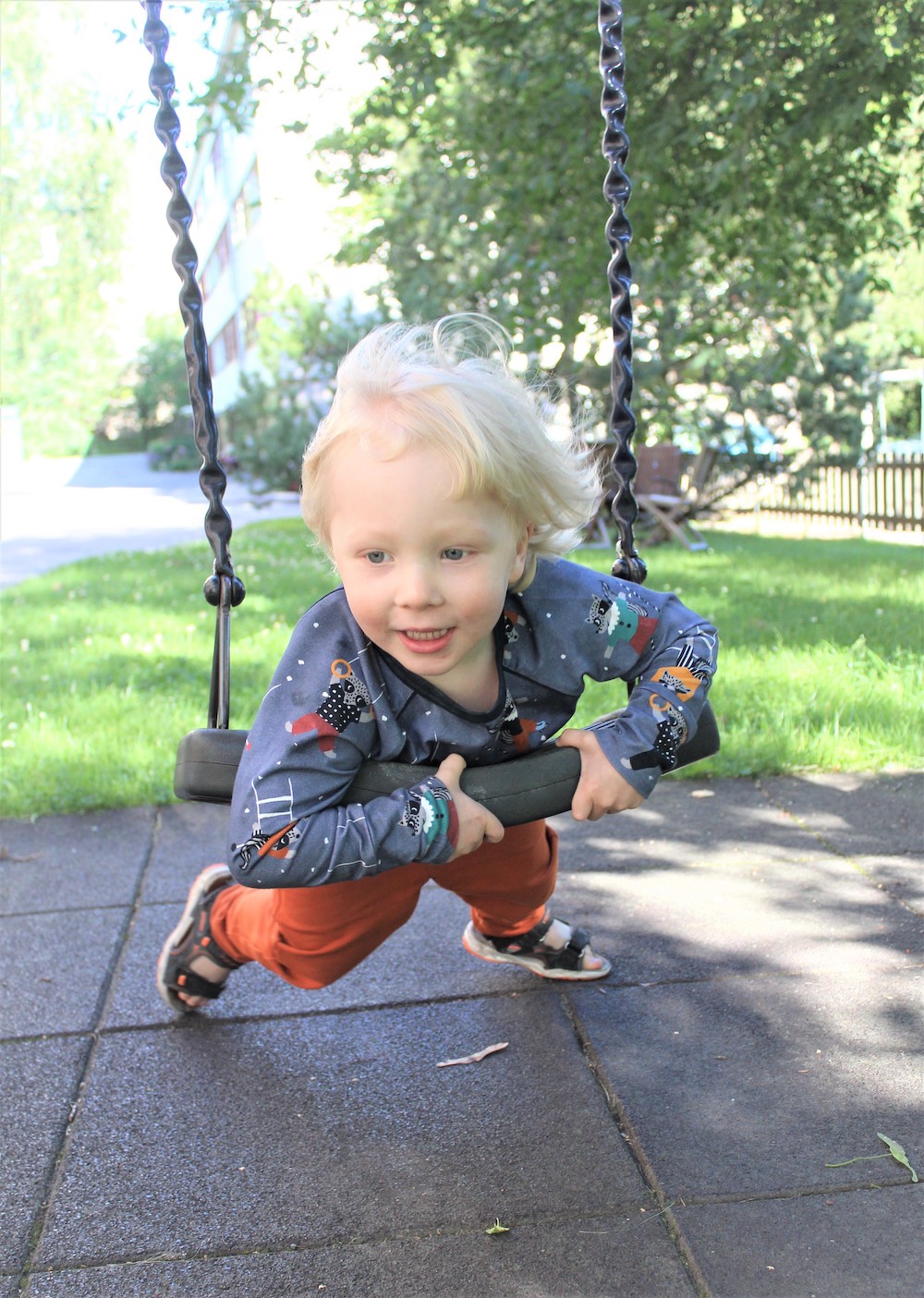 NOSH-lastenvaatteet ovat pitkäikäisiä tuplakokojensa ansiosta. Käännettävien hihan- ja lahkeensuiden avulla vaatteet kasvavat jälkikasvun mukana. Uskon, että tämä meidänkin vaatekerta on todennäköisesti sopiva lapselle vielä ensi keväänä.