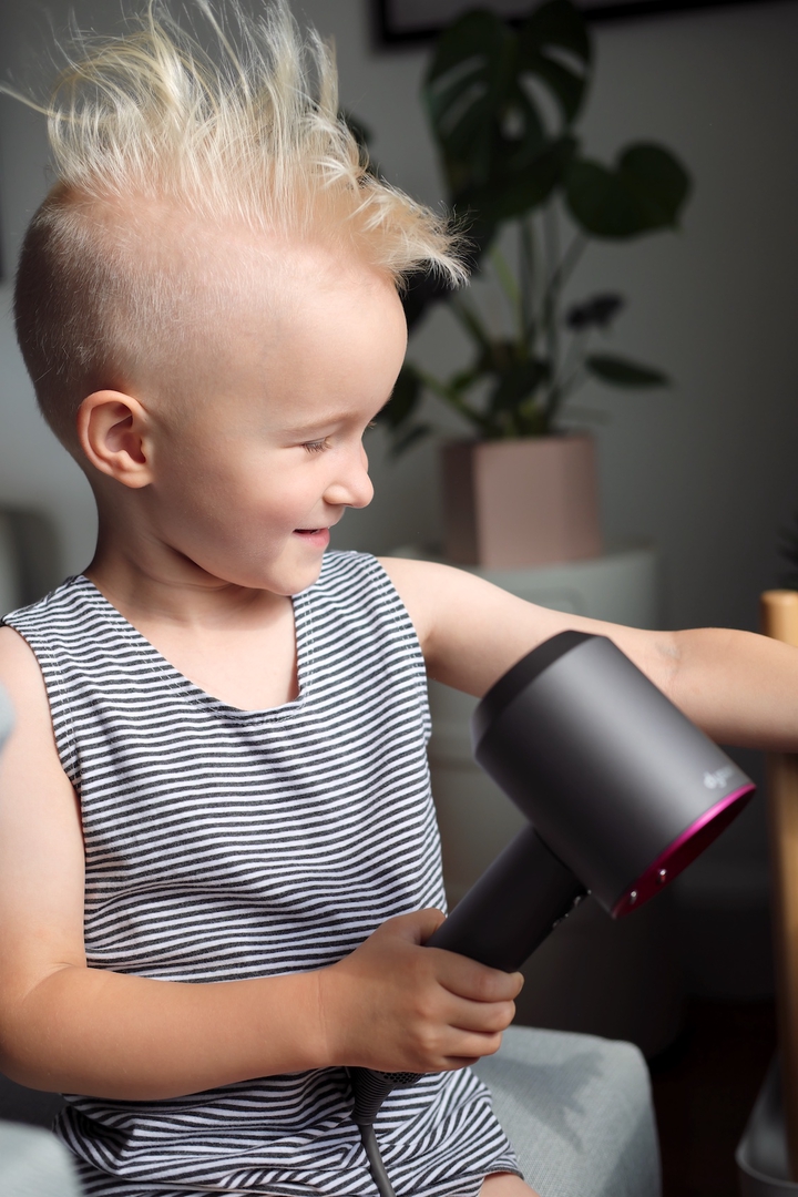 Edellinen hiustenkuivaajani oli kymmenen vuotta vanha. Se oli kookas ja ruma möhkäle, joka vei kylppärin laatikosta ison tilan ja piti järkyttävää ääntä, jota nelivuotiaamme pelkäsi. Supersonicin ääni on huomattavasti hiljaisempi! Joka kerta kun laitan kuivaajan päälle, haluaa perheen pienin kuullessaan äänen tulla pitelemään sitä ja auttamaan äitiä tukan kuivaamisessa.