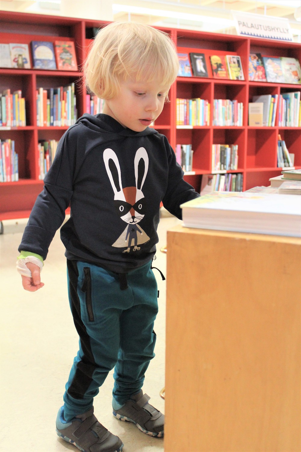 Olin napannut kassiini mukaan kirjaston kirjoja, jotka poikkesimme palauttamaan lähikirjastoomme samalla reissulla. Lapseni pääsi myös valitsemaan uutta lukemista kotiin.