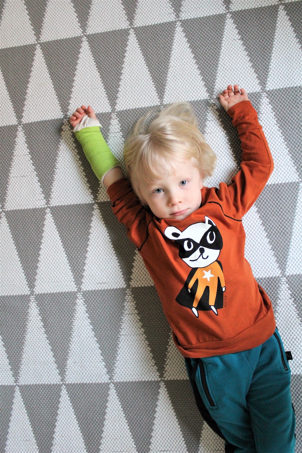 Alun totuttelun jälkeen arki kipsin kanssa on sujunut hienosti. Lapsemme on ollut supersankari kaikenlaisten kokemusten keskellä.