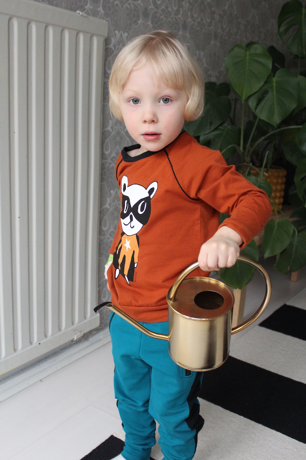 Arvostan myös, että vaatteet ovat kotimaista suunnittelua ja kasvavat lapsen mukana tuplakokojen ansiosta. Ja vaatemerkin leikkisät printit istuvat makuumme kuin nakutettu!