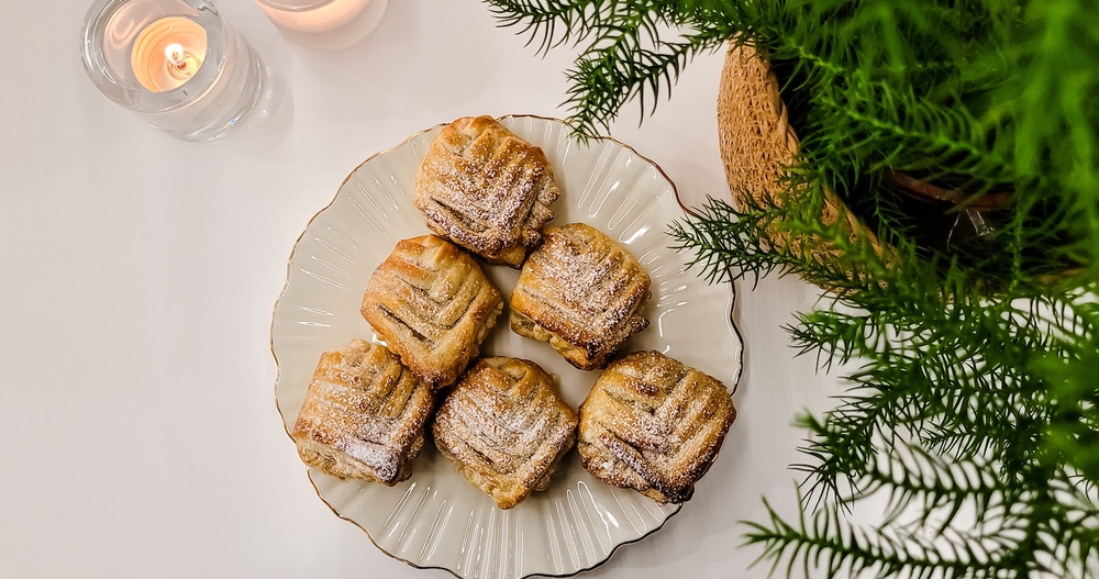 Tiiviiksi taiteltu voitaikinaneliö on paistettuna mehevä ja mukavan pehmeä. Voit varioida tortut oman mielesi mukaan – kokeile erilaisia paistonkestäviä hilloja ja täytteitä tai testaa vaikkapa suklaakonvehteja!