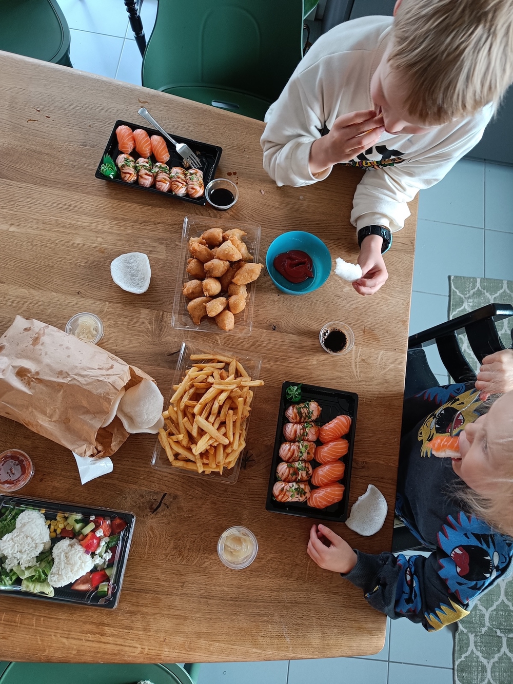 Tämän jälkeen saimme kuin saimme hänet syömään jotain kiinteää, mutta tilanne ei sitten helpottunut millään. Tätä kirjoittaessa, noin neljä vuotta myöhemmin, asia on helpottanut vain pinnallisesti. Minkä tahansa uuden ruoan maistaminen vaatii todella tiukkoja psykologisia harhautuksia ja Ahtisaaren neuvottelutaidot. Luonnollisesti kaikki epäterveelliset herkut uppoavat kaksin käsin (myös vanhempien selän takana) ja burgerit ja pizzat ovat myös vähemmän yllättäen varsin tervetullutta kamaa. Mikään muu ei.