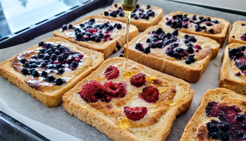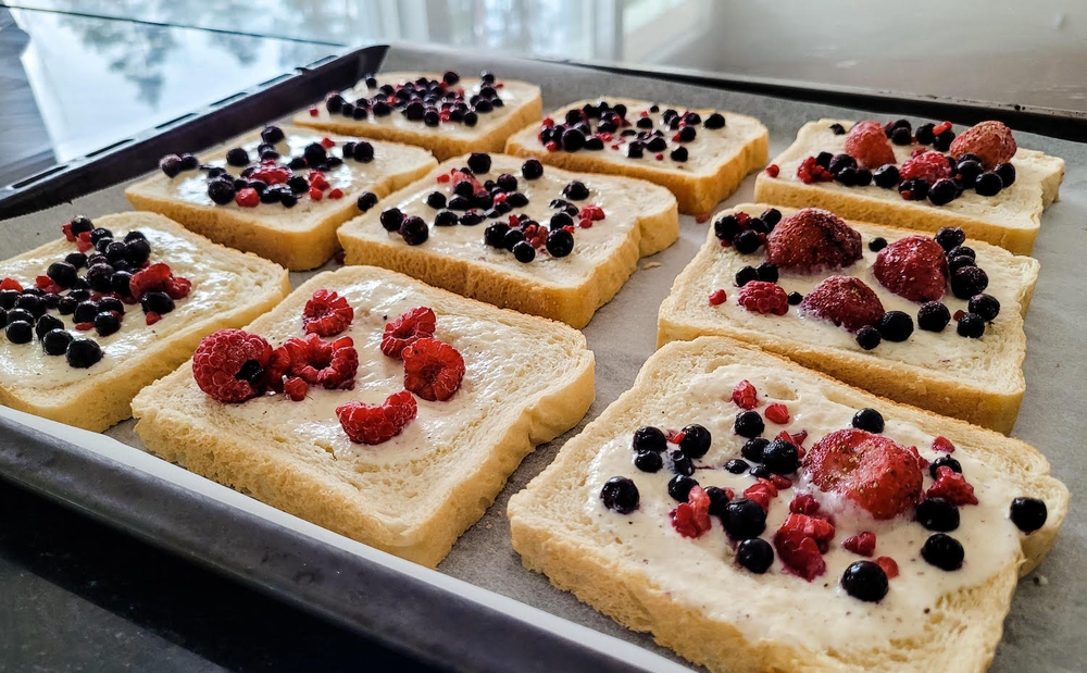 Tämä viraalihitti, jogurttileipä, tai kuten TikTokissa kutsutaan #yoghurttoast, on helppo ja raikas välipala. Myös isommat lapset osaavat valmistaa tätä itse, jos uunin käyttö on hallinnassa.