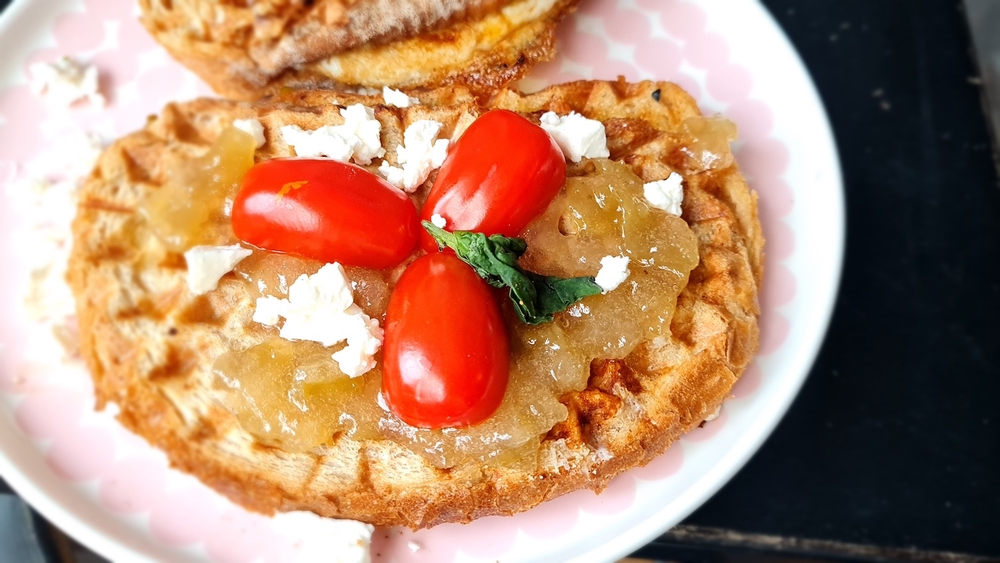 Feta-tomaattilämppäri vohveliraudalla