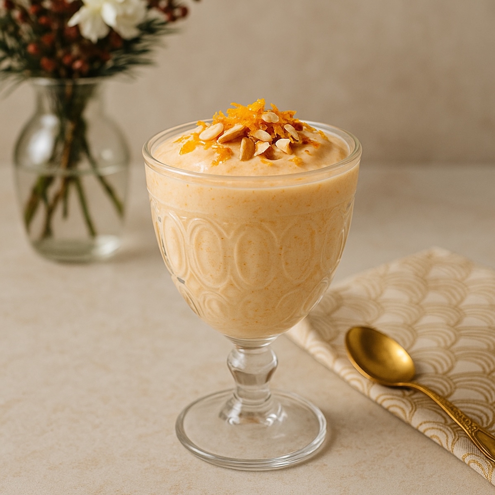 Tämä raikas ja pehmeä rahka on kuin aurinkoinen jälkiruoka syksyn iltoihin. Appelsiinin kuoren raikkaus ja hunajan lämpö korostavat persimonin luonnollista makeutta.