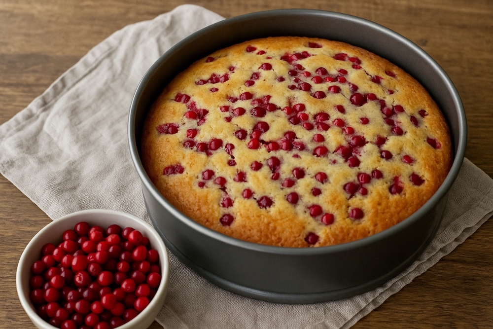 Valmis puolukkakakku on mehevä, raikas ja samanaikaisesti nostalginen ja moderni. Sen voi tarjota sellaisenaan tai viimeistellä vaniljakastikkeella tai kermavaahdolla.