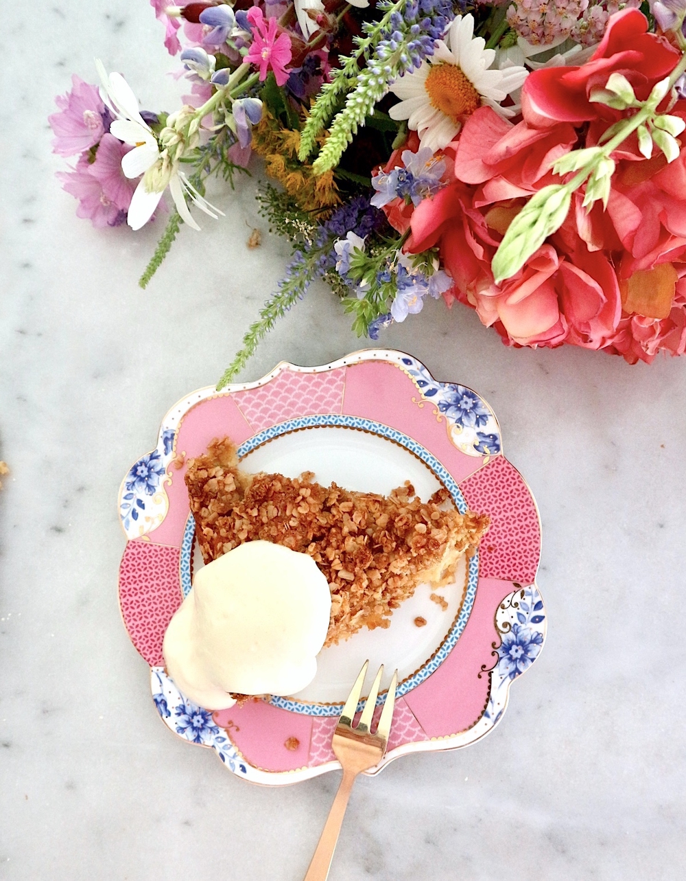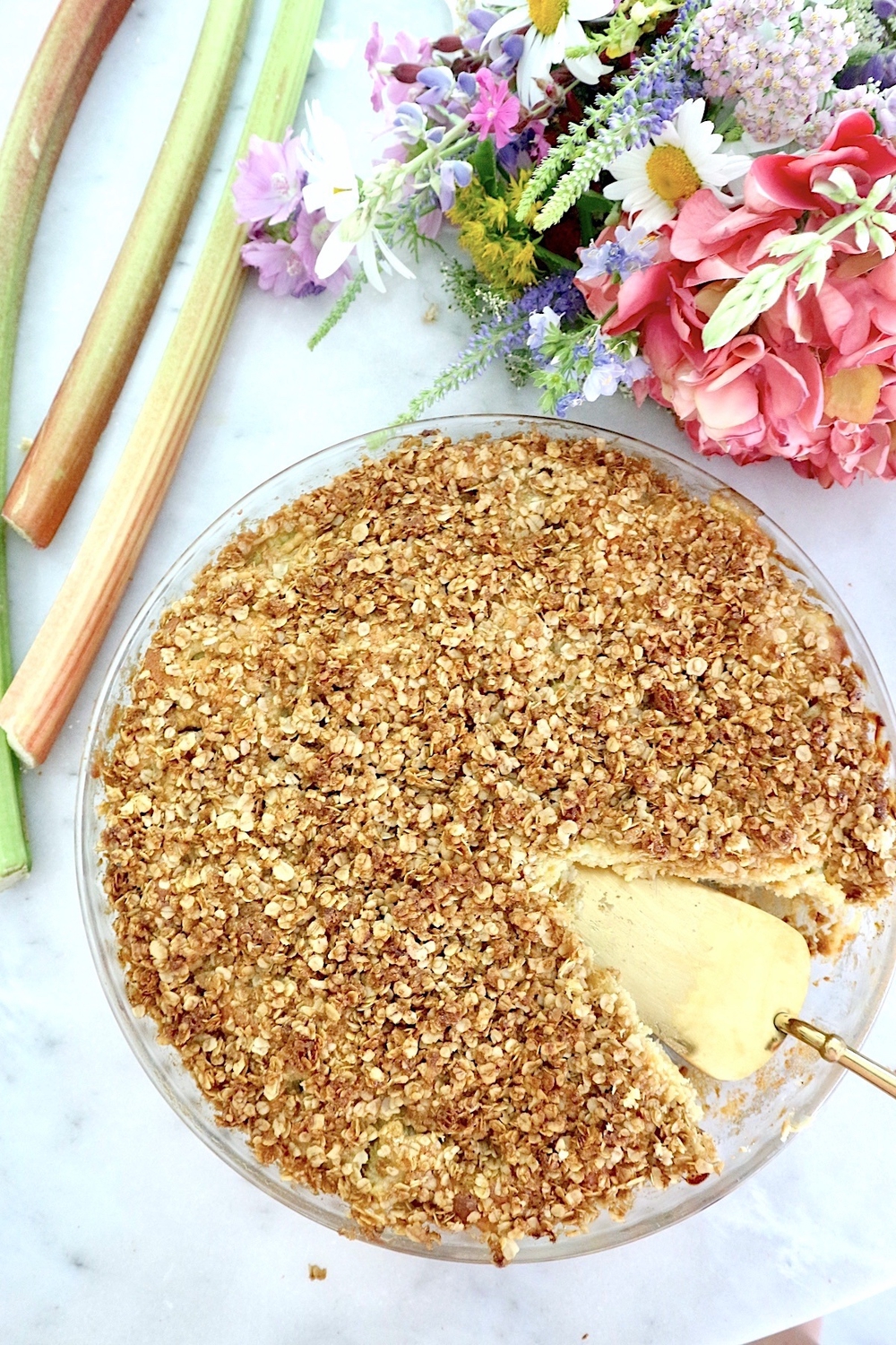 Mehevä raparperipiirakka kauramurulla