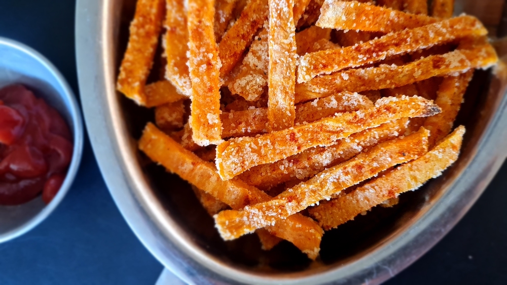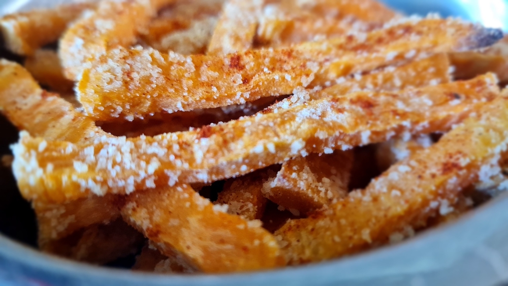 Tunnustaudun bataattiranskalaisten suureksi ystäväksi, ja olen jo pidempään valmistanut niitä silloin tällöin viikonloppuisin esimerkiksi kanapihvien seuraksi. Avopuolisoni on välillä kuitenkin kuittaillut, etteivät tekemäni bataattiranskalaiset ole kovin rapeita.