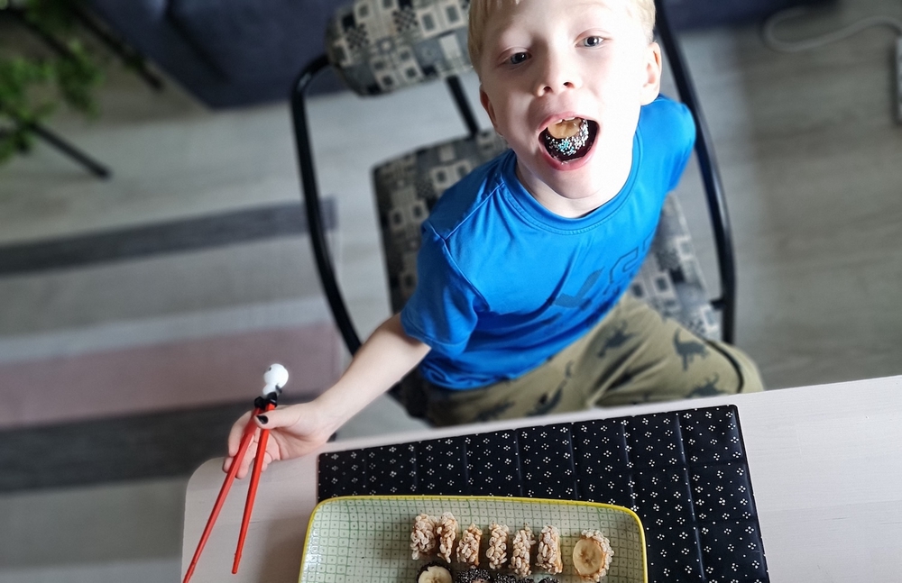 Kaikki valmistamamme banaanisushit olivat oikein herkullisia, mutta niin äidin kuin ekaluokkalaisen mielestä strösselisushit veivät kirkkaasti ykkössijan leikkimielisessä makutestissämme. Äidin piti pitää puolensa, että sai maistaa edes muutamaa strösselisushia, sillä nämä katosivat ensimmäisinä parempiin suihin.
