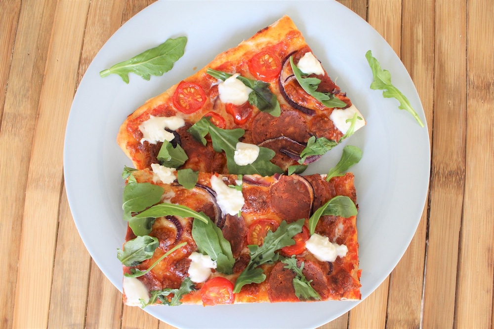 Taivaallinen peltipizza seitanmakkaralla ja buffalomozzarellalla – katso resepti!