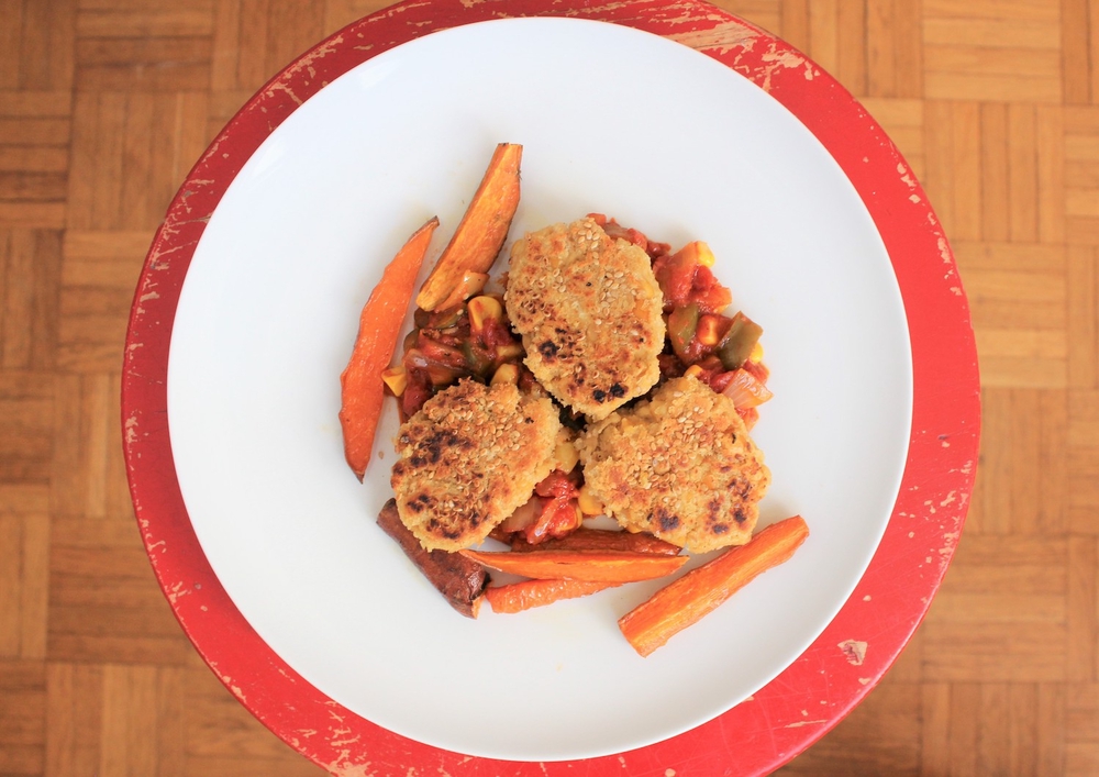 Mitä pidimme? Mielettömän hyvää! Tämä ruoka saa viikon kokkailujemme hopeasijan. Ruoka oli työläs valmistaa, mutta maku erinomainen. Barbecuekastike sopi täydellisesti kikhernenugetteihin, ja uunissa paahtuneet porkkanat veivät kielen mennessään. Jatkoon!