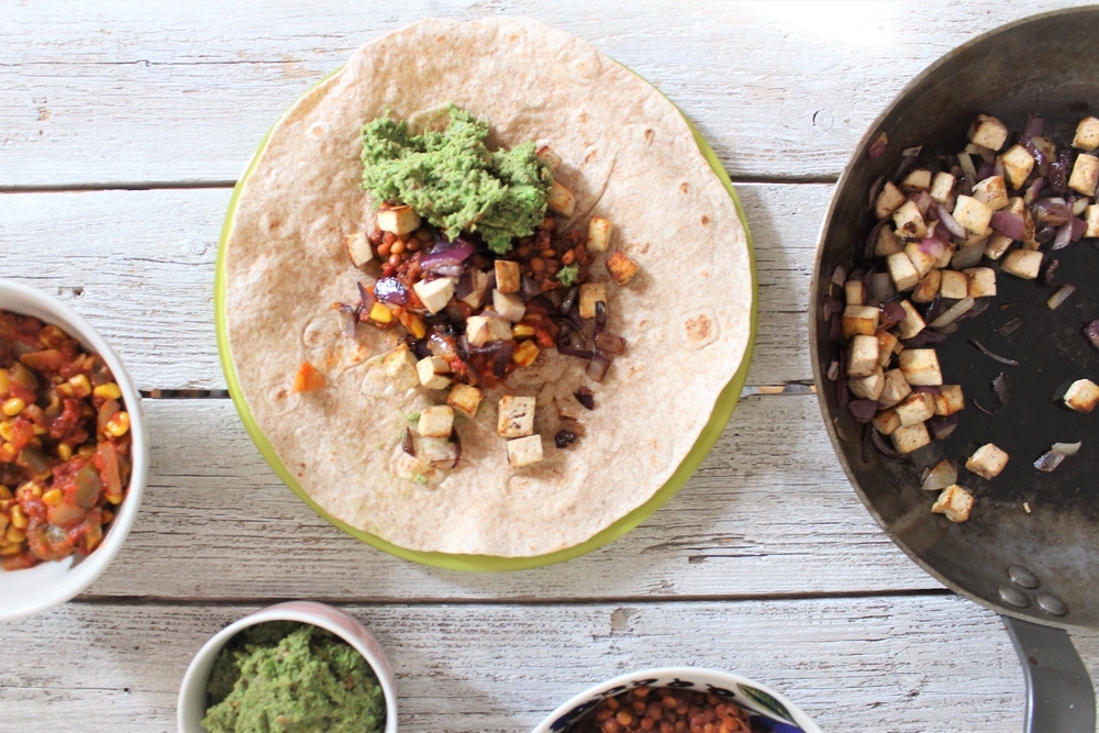 Mitä pidimme? Hyödynsimme jääkaappimme jämäruoat (esimerkiksi ylijäänyt barbecuekastike perjantailta). Linssitäyte maistui herkulliselta, samoin hernepesto. Meillä oli kiire rannalle, joten jätimme tortillojen leipomisen väliin ja turvauduimme valmiisiin tortillalettuihin.